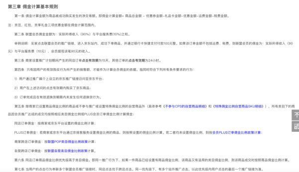京东联盟官网显示,联盟会员佣金金额为:实际所得收入(90%)与平台服务费(10%)之和。并举例称,买家点击联盟会员的推广链接,进入京东站内,成功下单商品,并通过银行卡快捷支付付款100元整。如果该订单不包括运费、税费,则联盟会员的佣金为:实际所得收入(90元)与平台服务费(10元),会员提现该笔90元的收入。