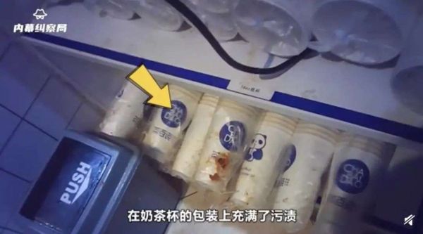 发现奶茶杯包装充满污渍