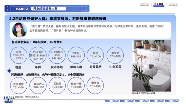 多类消费者的人群标签、种草平台和决策路径,都在《白皮书》中得到了精准的总结。此次项目中,TMIC平台还将为头部商家提供趋势新品会场,开放全场景测试功能,助力商家找到精准卖点,全方位赋能商家新品落地,提升天猫平台上的销售转化。