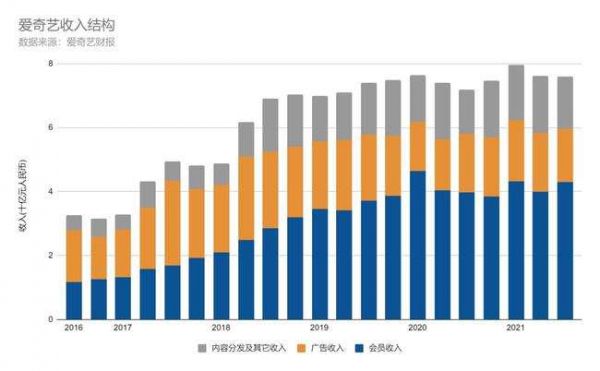 爱奇艺2016-2021年收入构成