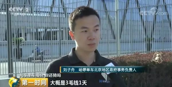 哈啰单车北京地区政府事务负责人刘子舟:我们企业每天的运营调度成本大概是0.3元,再加上车辆的折旧成本0.6元,其实每天的总成本大概是在0.9元,如果每天每辆车能够产生一单订单,就已经达到盈亏平衡了。
