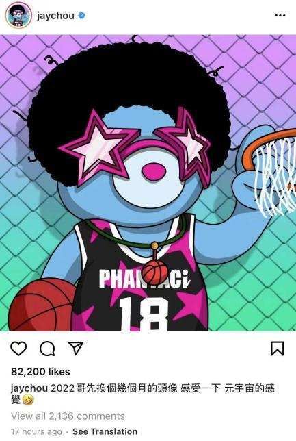 “2022哥先换个几个月的头像,感受一下元宇宙的感觉”——在Instagram上,周杰伦这样写道。