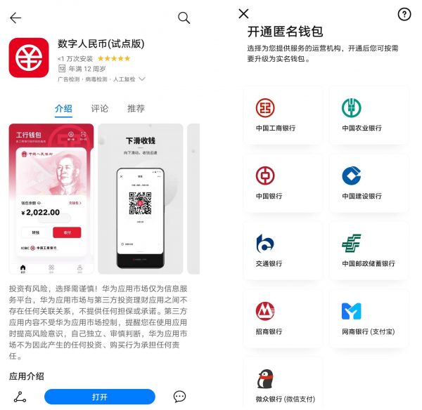 数字人民币(试点版)APP正式开放上线,由运营机构共同建设