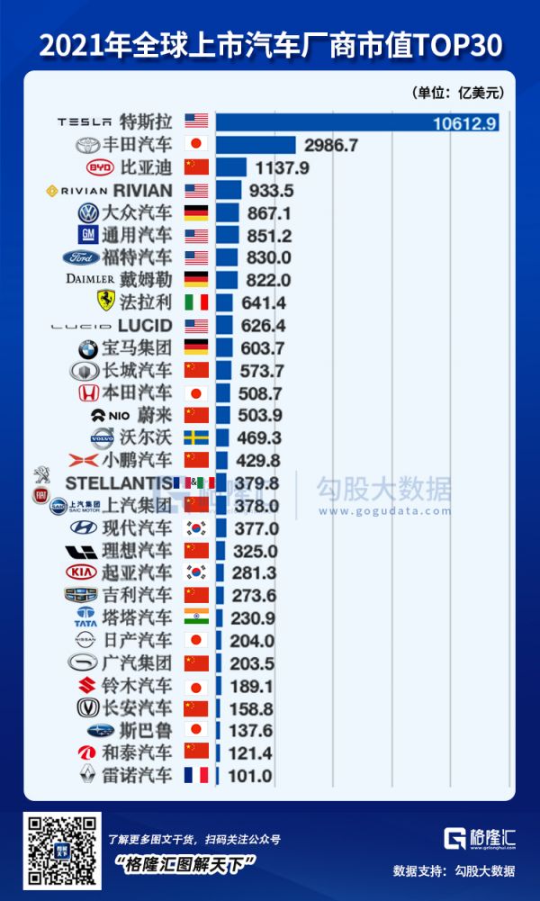 不仅是电子消费,美股特斯拉现在的总市值也超过排在其后十数家其他车企的总市值,同样也是大于中国所有上市车企的总市值,再加上宁德时代和其他一众锂电材料概念股。特斯拉达到这个地位,只用了极少的时间,对于那些百年传统车企来说,那就是一转眼的功夫。