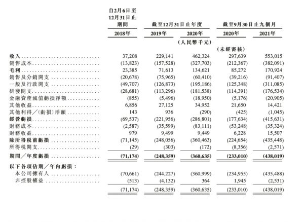 2021年前9月亏损4.38亿元,累计亏损超11亿元
