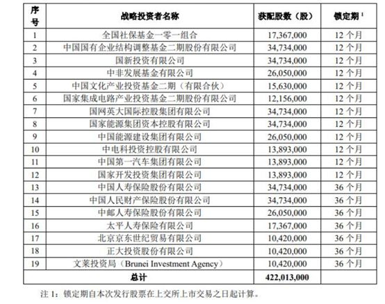 此外,京东、正大集团、文莱投资局等境内外企业和国际主权基金也参与了此次认购。
