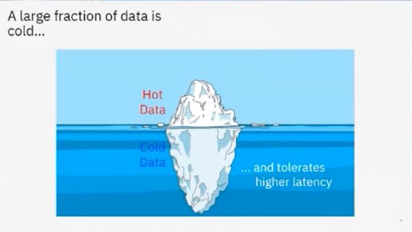 对于云端冷数据的具体应用,主要体现在存储冷数据和冰数据。目前,热数据只占数据量的20%,剩下80%数据是冷数据和冰数据。未来机器学习、数据分析将对这80%数据进行深度挖掘,因此它们需要被长期保存。