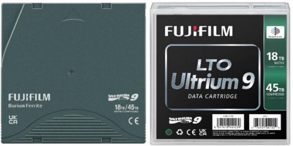 对比上一代产品,FUJIFILM LTO Ultrium 9数据流磁带产品(以下简称LTO9)的磁颗粒尺寸从35-45纳米缩小为10-20纳米,以12.65mm的磁带宽度记录在8960条数据轨道上,实现了最大记录容量45TB(未压缩时18TB)。LTO9以每秒400MB的高速传输速率(数据压缩情况下,可达1000MB每秒),比其他存储系统快20%。