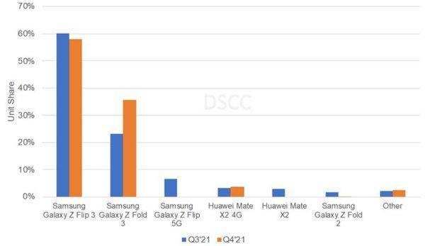 业内人士预计,2022年折叠屏手机出货量将年增132%到1750万台,三星依旧还是折叠屏市场的老大,销量将达1200万至1300万台,整体市占率会达到74%。