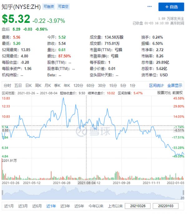 此时距离知乎去年3月在纽交所上市以来,不到一年。