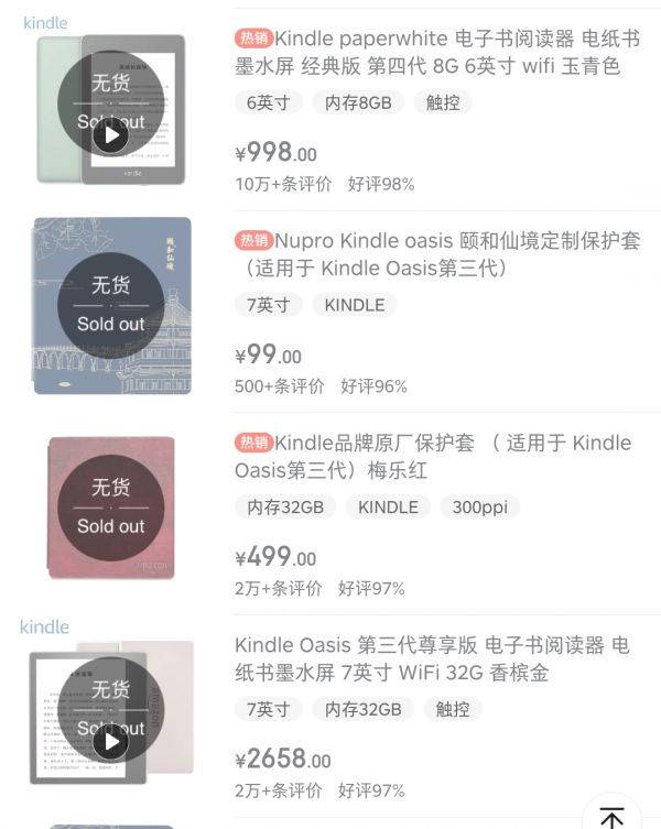 由于闲置率高,Kindle成为二手交易平台的热卖商品。2020年,“一半盖泡面一半挂闲鱼”是年度闲鱼热词第一名,当年闲鱼交易了40万单闲置Kindle。