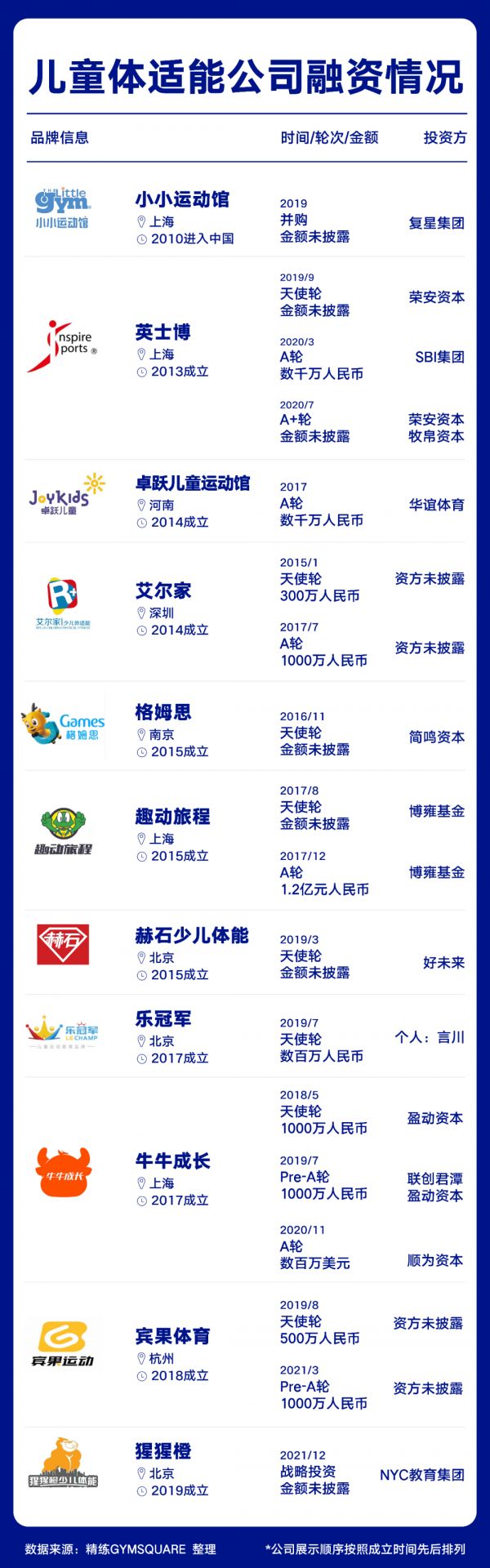 ■ 儿童体适能公司融资情况 整理:GymSquare