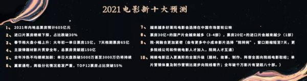 2020年12月2日,我们发布了2021年中国电影的十大预测。和往年80%以上的正确率不同,去年十大预测的正确率仅有60%。