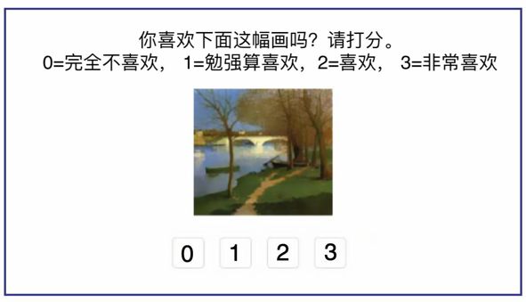 首先,他和同事收集了1001幅不同流派的画作,并邀请了7位人类志愿者分别对所有画作进行了喜爱度评分(0-3分,0分是完全不喜欢,3分是非常喜欢)。