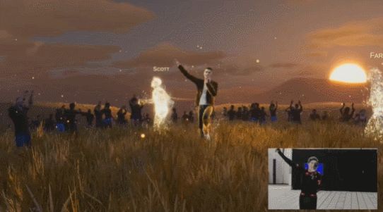 他的”真实形象”则身着“动作捕捉服”,出现在屏幕右下角。观众可以看到,Justin Bieber一举一动的动作细节都被投射到了屏幕上自己的虚拟形象中。