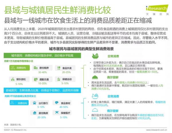 艾瑞咨询发布的《2021中国县城生鲜消费升级报告》显示,社区电商成为县域消费经济增长的重要引擎。以四川仁寿县、三台县等地区为例,2021年1月至10月期间,该区域某社区电商平台的大闸蟹订单量之和就达到了北京订单的98%。