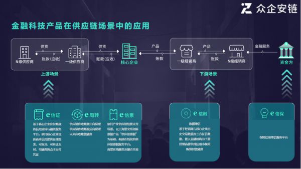 「众企安链」于2020年成立,是众安保险孵化的金融科技公司。「众企安链」致力于用科技赋能供应链信用协同,提供“金融+场景+技术”的供应链金融服务解决方案,以产融资源整合、业务模式咨询、金融科技输出、联合运营支持,为核心企业优化供应链管理,帮助资金方准确识别风险,为供应链上下游小微企业解决融资难题。
