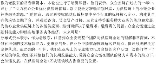 「众企安链」宣布获数千万元Pre-A轮融资,以“区块链+供应链金融”为中小企业解决融资难题