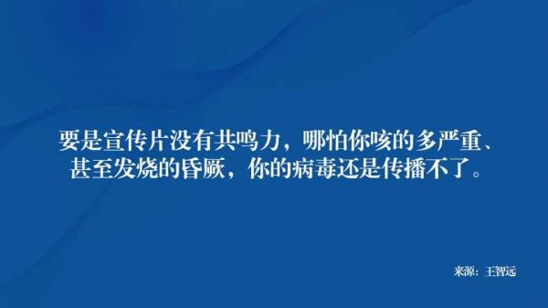 讲究能否像病毒一样被用户传播分享社群,要是宣传片没有共鸣力,哪怕你咳的多严重、发烧的昏厥,你的病毒还是传播不了。