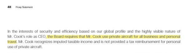 除了300万美元基本工资和约8200万美元股票,库克还拿到1200万美元非股权激励薪酬和138万美元其他报酬。所谓的其他报酬包括2.3万美元假期支出、63万美元安保费用、71万美元个人航空旅行支出。出于安全原因,苹果要求库克乘坐私人飞机出行。