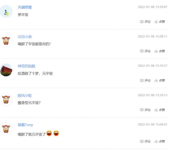 虽然大公司们“攀扯”元宇宙早已不足为其,但是当听到茅台也要进军元宇宙时,还是让网友们“惊掉了下巴”。