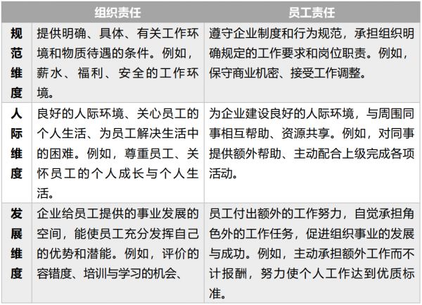 无论是高迭代还是标签化,其背后都是组织与员工关系的简单化。组织和员工之间的“契约”并不仅仅只有“组织出钱和资源,员工完成工作”这一简单的表述。从心理契约理论出发有规范、人际和发展维度来描述组织和员工之间的契约关系。