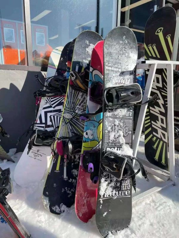 相比小段体验的双板,单板实际上更适用于新手,也更显得帅气。已经踏入滑雪圈第三个年头的刘皓向AI蓝媒汇介绍,自己已经买了两块单板滑雪板,新手时购买的是常规款,价格在990元,而到了进阶高手阶段,就会更加考虑滑雪板的弹性、材质、美观、长度以及品牌,所以第二块他购买的是滑雪品牌TERROR长度为150cm的单板,价值2499元。