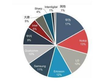 图表3:企业在ETSI 声明的5G标准必要专利占比(截至2018年12月底);数据来源:ETSI,中国信通院
