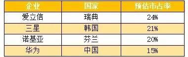 图表4:调研机构IHSMarkit的5G通信设备预估市占率(2018年);数据来源:IHSMarkit,如是金融研究院