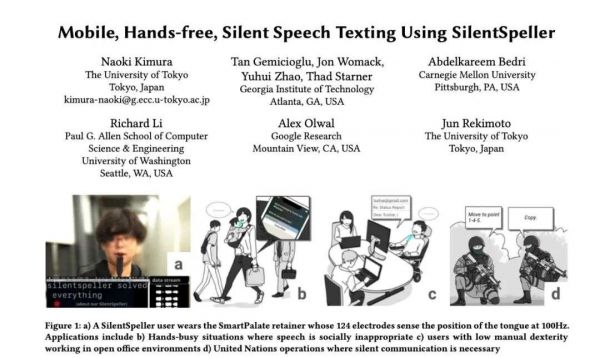 谷歌眼镜的创始人之一Thad Starner发起的这项新项目名为 SilentSpeller,可以让人们使用“牙齿固定器”发送信息,通过舌头动作“默声”拼出单词,这一系统就能识别出你想说的话。该设备通过跟踪用户舌头的运动来工作,研究人员声称,该系统以 97% 的准确率识别字母,整个单词的识别准确率为93%。