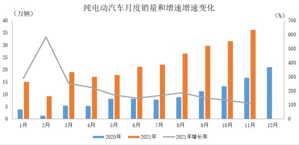 目前,2021年全年的具体的数据尚未发布,但据中国汽车工业协会数据,2021年1-11月,国内新能源汽车累计产量已超过300万辆,销量接近300万辆,新能源汽车市场渗透率上升至17.8%,预计全年销量达到340万辆,同比增长1.6倍。