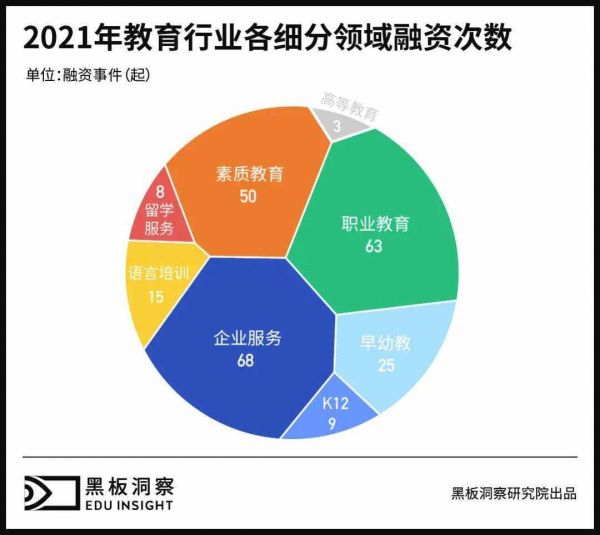 5. 2021年教育行业各细分领域融资次数