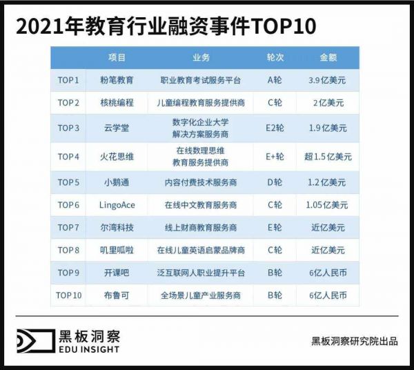7. 2021年教育行业融资事件TOP10