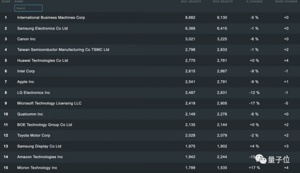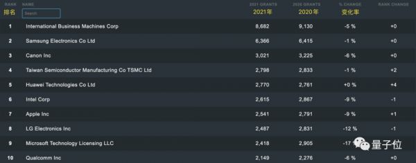 IFI专利授权排行榜:https://www.ificlaims.com/rankings-top-50-2021.htm
