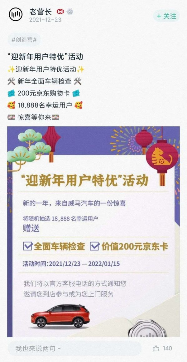 威马汽车推出的“迎新年用户特优”的活动,