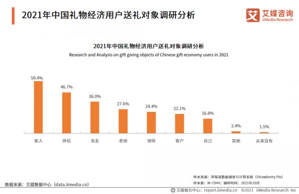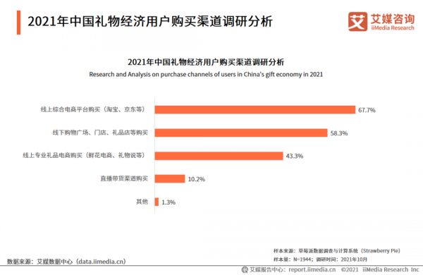 2021年用户购买礼物渠道以线上综合电商平台为主