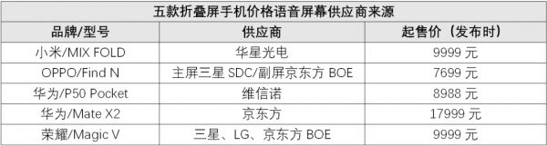 光子星球注意到,手机大厂一方面借由折叠屏实现升维,同时也在通过技术迭代调整既有供应体系。其中除小米MIX FOLD与华为两款折叠屏供应商相对单一外,荣耀与OPPO两家皆采用了混合供应商策略,相对有更多回旋余地。