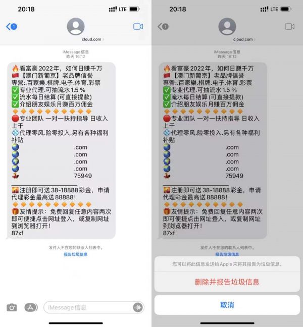 但这一套方便的体系,也没少给用户带来烦恼。几年前,iPhone 用户深受 iMessage 垃圾信息困扰,苹果还因此被央视点名批评。后来 iMessage 升级了过滤机制,加上一些垃圾短信过滤软件的出现,iMessage 上的“澳门赌场”才逐渐被压下去。