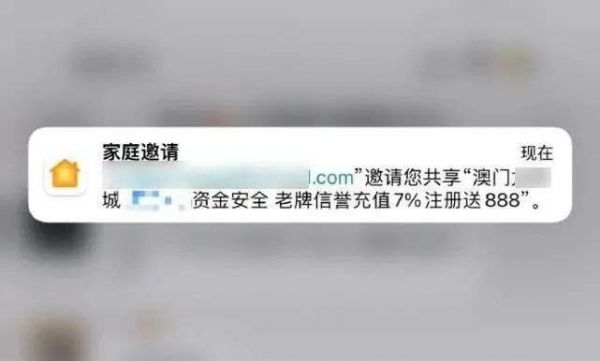 根据网友们的反馈,不法分子是将垃圾信息附加在“家庭”app 的邀请通知文本上,然后添加批量发送。家庭 app 添加邀请只需要知道对方邮箱,因此,邮箱 Apple ID 相匹配的用户,就会收到这条附带垃圾信息的陌生人邀请。
