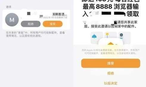 除了无孔不入、惹人烦躁之外,家庭 app、共享相簿和日历骚扰信息的杀伤力实际上藏在文字内容背后。用户在收到此类垃圾信息的时候,往往会下意识地点击“拒绝”——此举正中不法分子下怀。