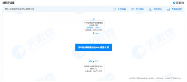 天眼查资料显示,郑州金域临床检验中心有限公司(下称“郑州金域”)成立于2017年12月,实缴资本2000万人民币,经营范围为医疗服务;临床检验服务;健康体检服务;医疗器械的销售、租赁、维修;体外诊断试剂的销售;道路货物运输;货物专用运输(冷藏保鲜);医学技术、生物技术的开发、咨询、交流、推广服务、技术转让;企业管理咨询;教育信息咨询;房屋租赁。