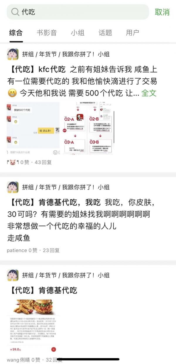北窗还记得她第一次发布代吃贴的时候,留言里一下子涌入10多个需要代吃的留言,甚至开始在帖子里竞价。供不应求的背景下,很大程度上,负责代吃的一方更有“定价权”。曾经有一次,因为联名套餐里的主食不是汉堡,而是可颂,代吃们觉得有点“亏”,于是要求购买代吃的人多付钱。