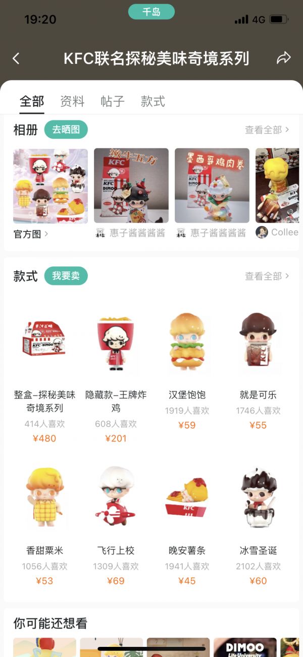 与此同时,在电商平台创造了“潮玩”这一单独品类的泡泡玛特,有着更广泛的话题度和炒作度,此次盲盒的主人公DIMOO,本就是泡泡玛特五大头部IP之一,联名消息一发布,在“娃控群”就引发了一场不小的化学反应。在二级市场早已形成稳定交易链条的泡泡玛特,自然会吸引一批黄牛进入此次活动中来。