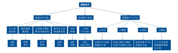 通过构建包括高端医学影像设备、放射治疗产品、生命科学仪器在内的完整产品线布局,并配套智能化、信息化解决方案,使得联影成为目前国内唯一一家产品线覆盖全线高端医疗影像设备,并同时拥有自主核心技术的企业。