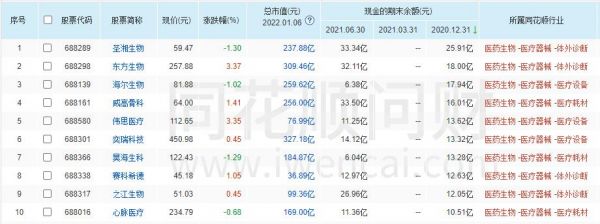 科创板上市医疗器械企业现金期末余额 来源:同花顺i问财