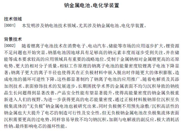 我们查到,宁德时代不仅布局了相关材料设计专利,还率先申请了生产工艺专利,这表明其无负极金属电池技术研究进展可能比想象中快,或已有一定的产业化基础。而且,在专利中,频繁被提起的是钠离子,我们可能看到这一黑科技率先在钠离子电池上落地。