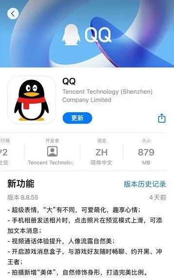 例如国民级应用微信在2012年的2.1版本时,还仅为1.39MB,而如今在8.0.16版本中则已经一路跃升至209MB。当然,在目前的一众知名APP中,微信还不是最“离谱”的。不久前,手机QQ就迎来了8.8.55版本的升级,根据苹果App Store中的信息显示,iOS版的QQ安装包体积已经达到879MB,即便是Android版本也来到了371MB。