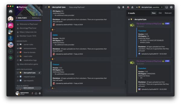 PlayCover 官方 Discord 服务器中的已解密 IPA 分享频道