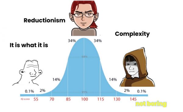 (顺便说一下,我认为许多反Web3的论点由于过于简化而失误。实际上,我很确定Midwit Meme只是还原论与复杂性的对比)。