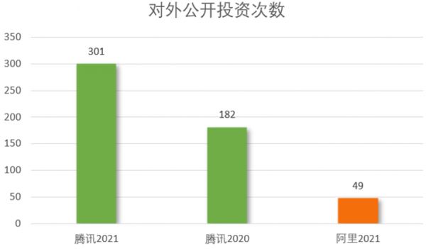 但“瘦身”的另一面,是腾讯投资在2021年的301次出手。无论跟过去的自己比,还是跟同期的阿里比,这一数字都堪称疯狂。